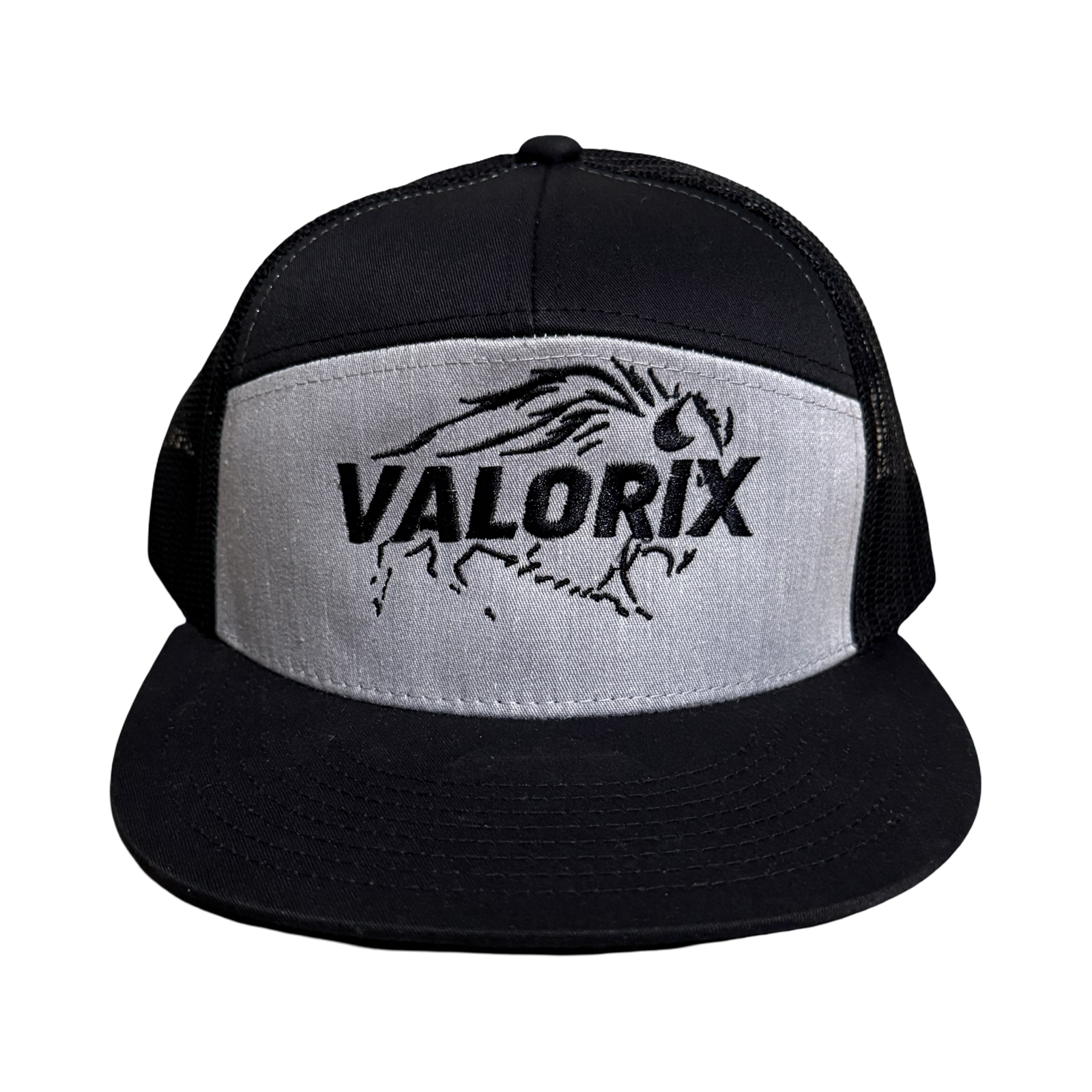 Black Embroidered logo on 7 panel